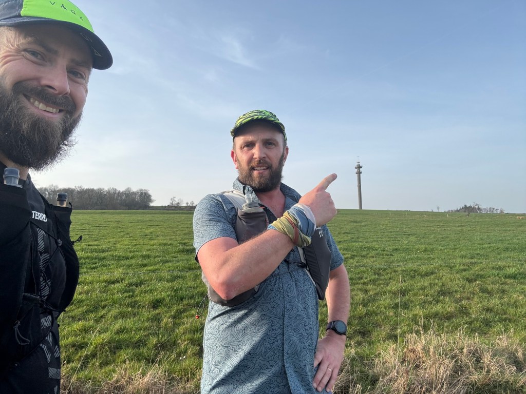 The evening was dimming as we ran the final 20km. The evening light was incredible as we navigated long, sloping farm roads with great views over the surrounding region. After an initial, long sloped incline we re-joined the long straight we’d navigated on the second loop and found ourselves by the communications tower – a landmark we’d see before and would see again! Here we began the “leapfrog” phase of the race. You’d pass a group, they’d pass you; we were all in the same boat now, plodding towards the finish line.