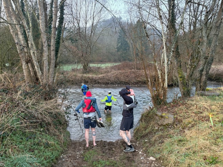 This was the meat of the race. “playtime is over!” as the race briefing put it. It started cold and confusing, with some route-finding puzzles that landed us in the mud by the riverbank. I was navigating separate GPX routes for each loop, but Matt’s watch couldn’t differentiate which loop he was on as he loaded a single file of the whole route. Along the riverbank we weren’t running as we were clambering over fallen trees and through thick, clay like mud. Matt took a spectacular slip which he struggled to get back up from. There was also a few steep climbs including one which felt like we were in a jungle, perfectly dense forest and only the sounds of our breathing and birds chirping away.