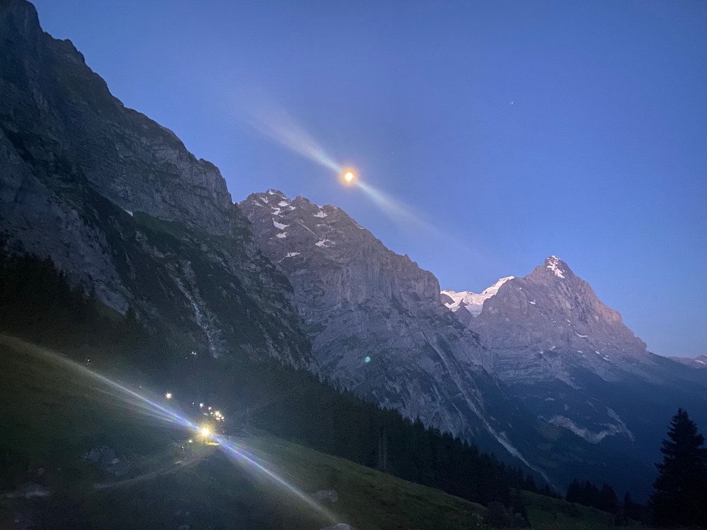 It’s 3:30am and Paul and I have met Matt at the start line in the shadows of the majestic mountains surrounding Grindelwald. Despite the early hour and darkness it is already very hot. We are upbeat and excited as the race gets underway and we pass through the start arch with hundreds of other runners.
