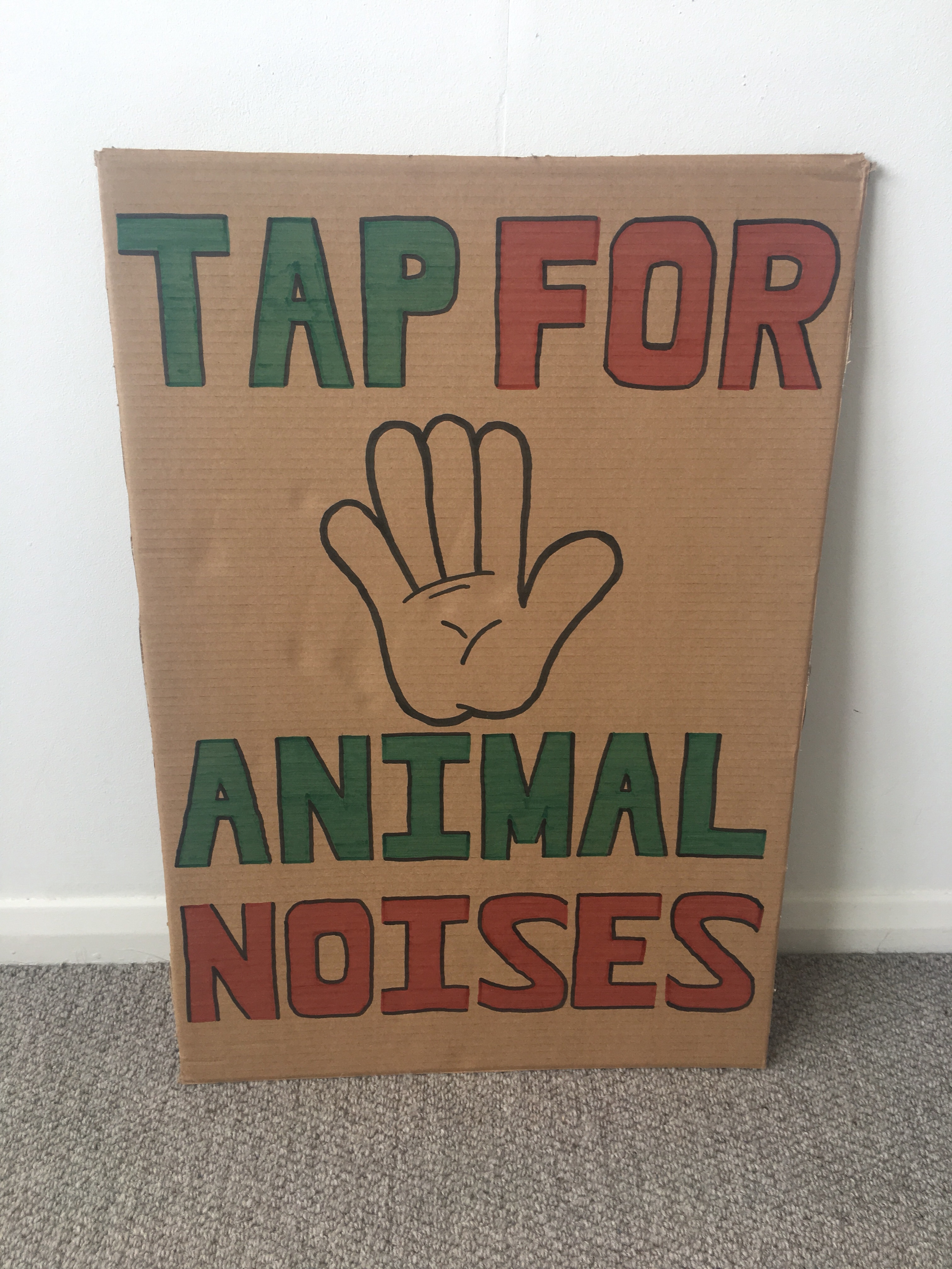 I made it my aim earlier in the year to spend more time supporting other runners. London marathon is such a fun event to support at. Cool Cats and Wild Trails has arranged to meet in limehouse near mile 21. I wanted to make a sign and I had the perfect inspiration from a child at Brighton. He held a sign saying “tap here for animal noises” and he delivered. So I stole his idea and made this sign up.