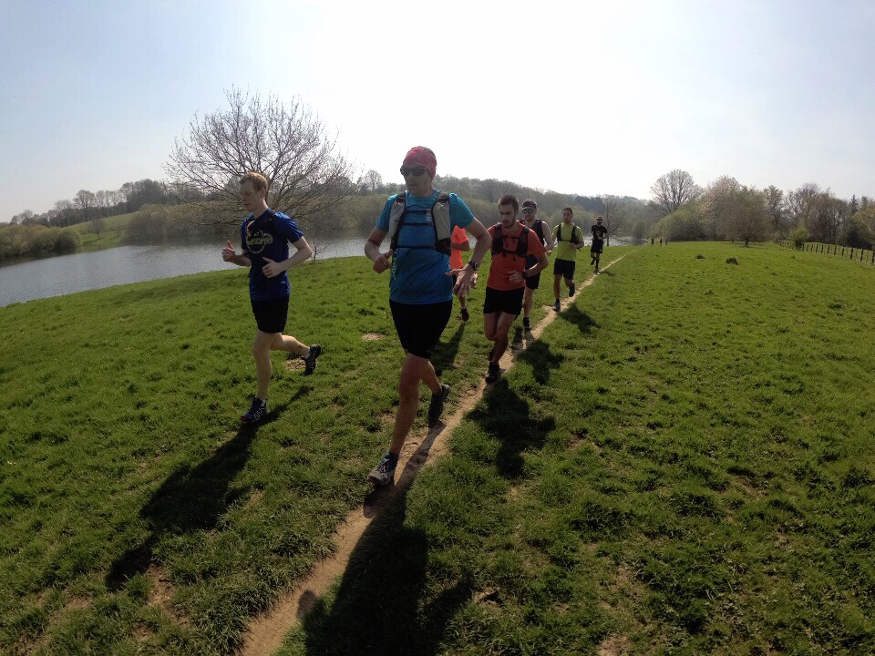 The first third of the route saw us run trough some fields, past the boat house and across a man made bridge/path built through the lake. We were largely close by as a group and enjoying chatting away. As always it’s so great to share and swap stories of adventures and plans with other passionate runners.