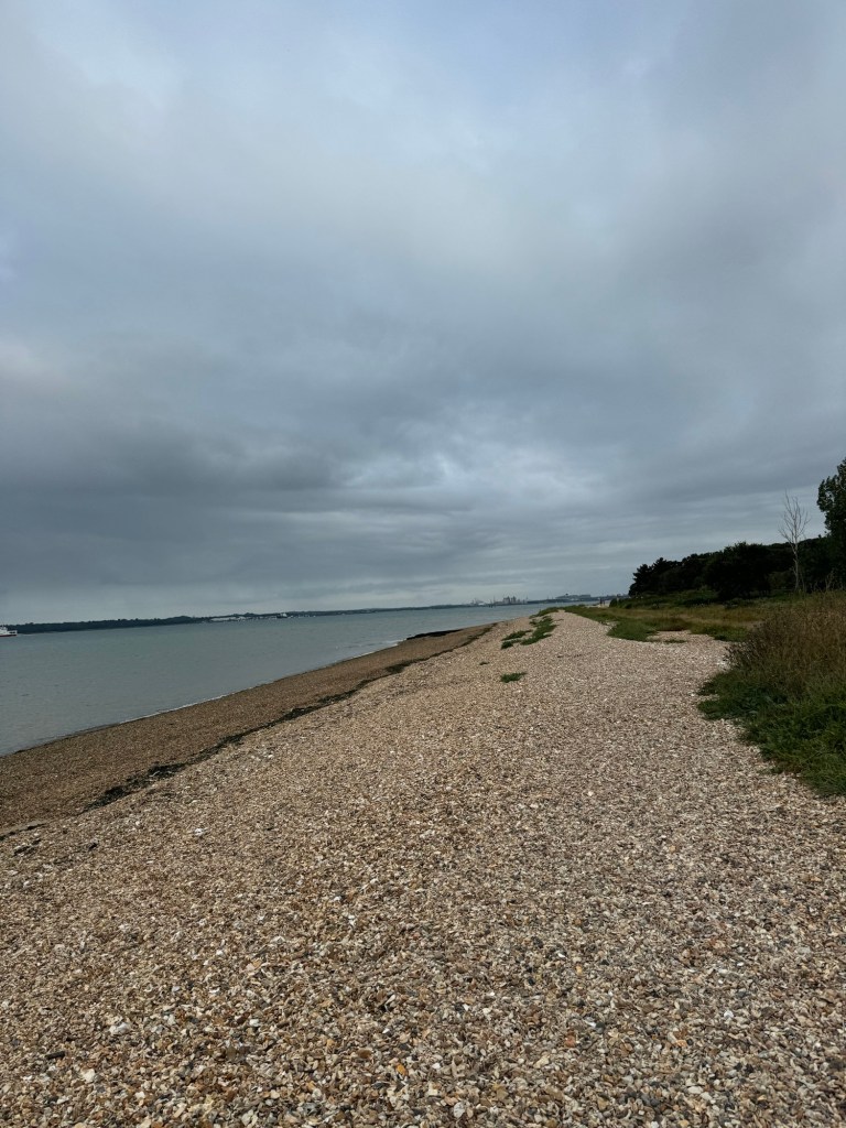 As we reached the coast we had a short paved section before finally hitting the trails. Not long after two speedy marathon runners ran passed. Geeez they were quick (they started ten minutes after us). From here the trails weaved through woodlands passed Netley Abbey and Victoria park, where Royal Victoria Country Park chapel is, with more stickers added to the bib. A few more marathon runners passed (after a big gap from the front two!) as we passed through more woodlands and made our way back to the coastal path. Before long we were running along a shingle beach. That sapped the energy and tired the legs pretty quickly. It was refreshing though running alongside the water, hearing the calming sounds of the sea. Not many of my runs take me along coastal paths!