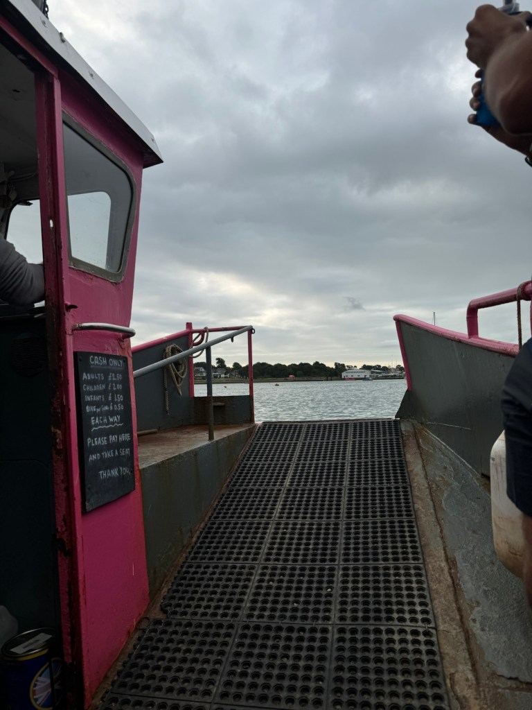 After another few kilometres we reached the first aid station at the river crossing. I’d been expecting and waiting this. Another feature of the race is that you need to cross the river on a boat. Oddly not that niche for me as I’ve had a boat crossing on my first 100 miler – the Tarawera 100 in New Zealand. I also had to get a boat across the fjords in Norway for the start of the Lofoten Arctic Triple. Still it was pretty fun. The organisers had hired the small pink ferries to ship runners across the river Hamble to the other side.