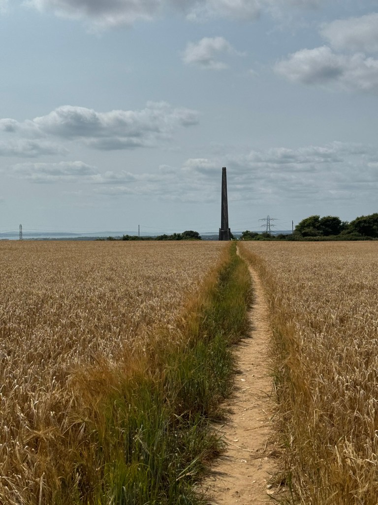 Up top we passed the site of Barbury Castle and then I think we joined a section of the Ridgeway trail, for a short while which had amazing views over the Wiltshire countryside. From here it was mostly down hill as we gradually made our way back to the M4. Coming into the second aid station we were greeted by a golden retriever on her walk. She took great pleasure in seeing us and rolled over for some tummy rubs. She was beautiful and embarrassed her owner with her cheekiness. We left the aid station and crossed the M4 back into Swindon. We enjoyed the looping bridge crossing here.