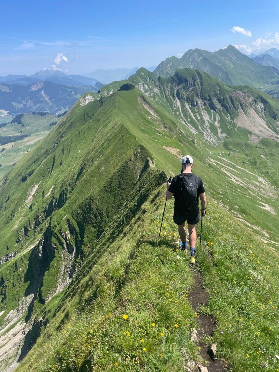 A few years ago Paul did a solo adventure along the Hardergrat Trail in Switzerland. Ever since he’s been eager to go back with us to do it with him. We started scheming and found the time to form a plan and incorporate another visit to the Eiger Ultra Trail alongside the Hardergrat Trail. Paul, Matt and I did the E101 100km Eiger Ultra Trail back in 2022. Darryl and Natalia wanted to do the race too so it was perfect timing, to combine the Hardergrat with the E51 50km race the following day.