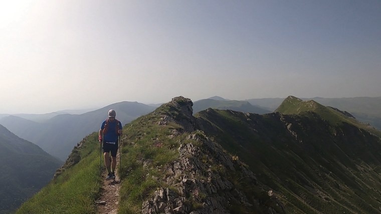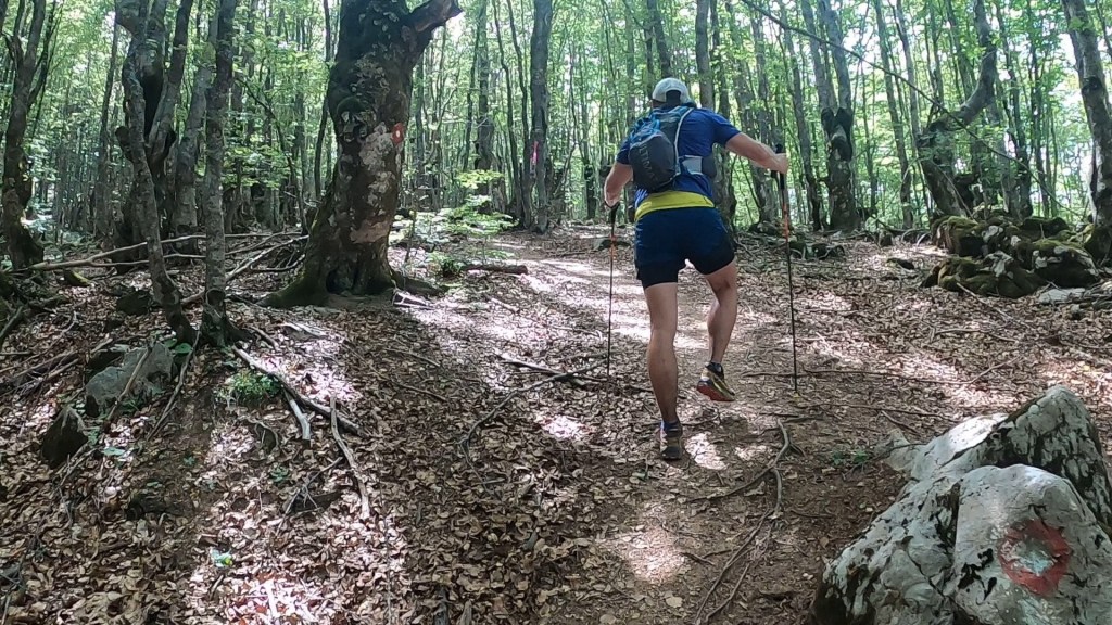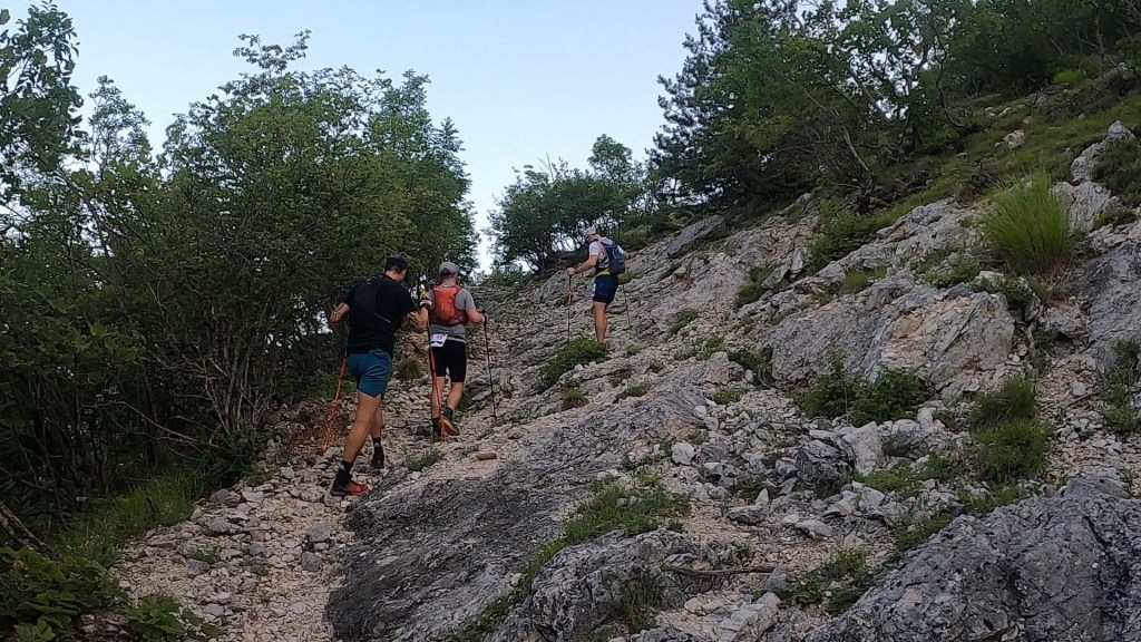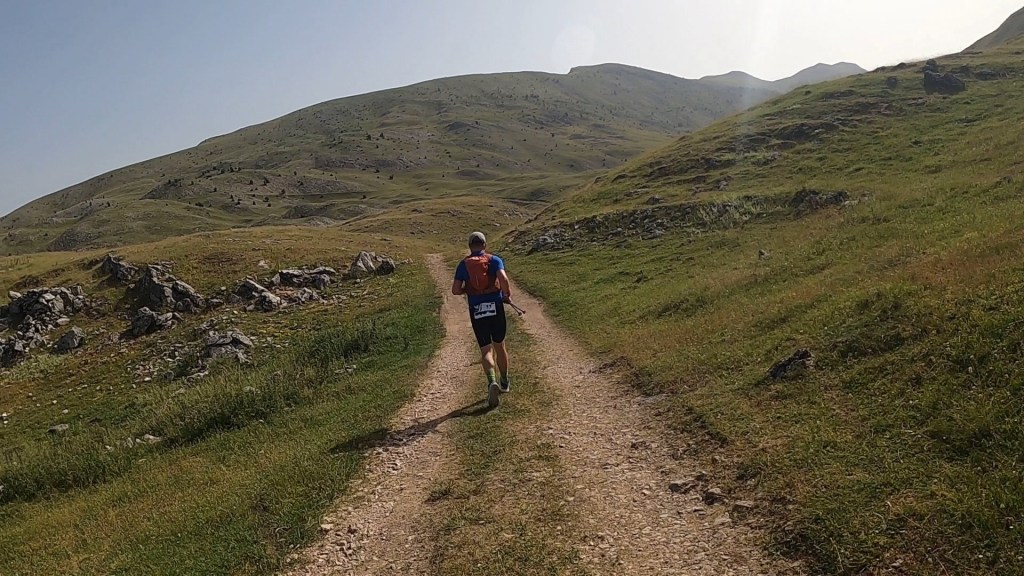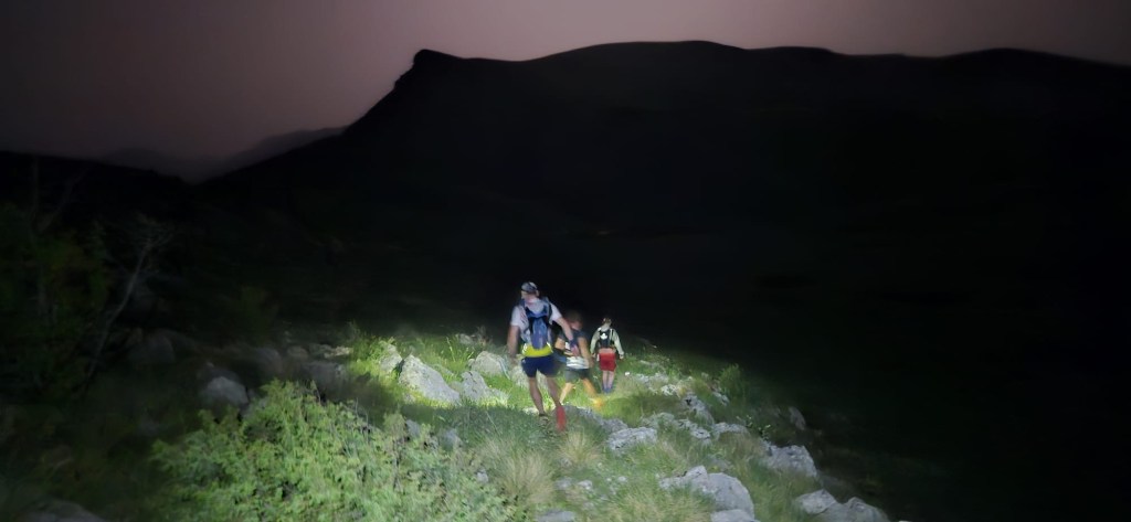 Looking back, this first section was probably one of the easier bits of the course but also gave the first insight into the route. Throughout, and what followed was long and steep, very steep climbs. Each one caught us out and we moved slowly. The terrain however changed and the ground became softer and wetter and harder to move through. A few days of relentless rain and storms had saturated the mountains and made them far muddier than I was expecting. Our pace on the climbs dropped as we moved more slowly. The descents too became rockier and more technical. Gone were the lovely runnable descents we’d first encountered.