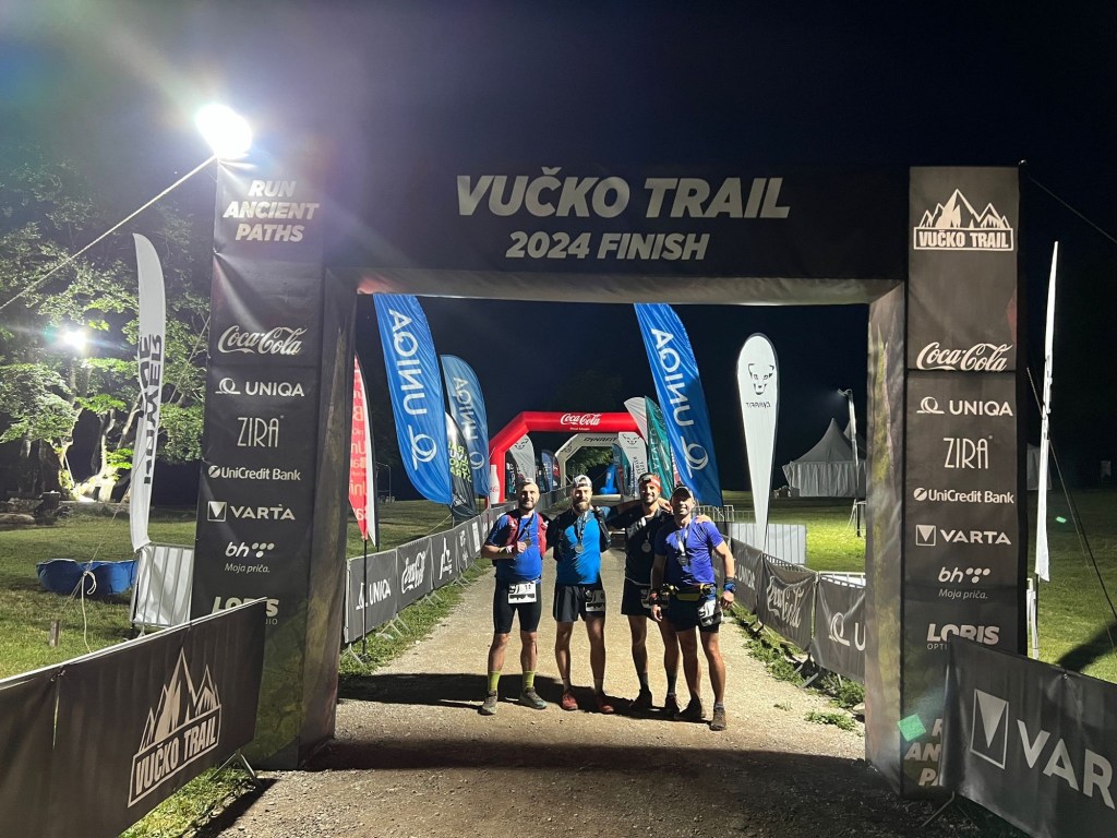 We were on it now though. We were hustling with a decent pace as the forest trails become more substantial and gravel tracks started to dominate. We knew that we must be close now and sooner or later we’d hit a main road that would lead us back into the town. Then, it did. In the distance a head torch. It was the Dutch Lady’s father waiting for her. We ran on and were power hiking along a road when he whistled and called after us. We were just about to miss the turn on the road. It was a huge, wide turn but not obvious in the night. The markings were chalk arrows drawn on the road and easily missed in our tired state. Thankfully he was there to ensure we didn’t continue in the opposite direction to the finish!