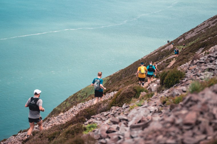 Refuelled, we headed back out. We knew the next section was going to be tough as it was the largest climb of the course. a straight up 400m climb. Not something to be scoffed at. No way to tackle it other than steady, relentless plodding forward. One thing at the back of my mind that was empowering here was knowing that, as we climbed, we were gradually turning back on the loop at West Porlock. Once we’d reach the top, we’d be around halfway through and from here on in running back in the direction of the finish. Always a good feeling. Part way up we met Gaddy again and soon after the summit he joined us and we all ran along together for a little while.